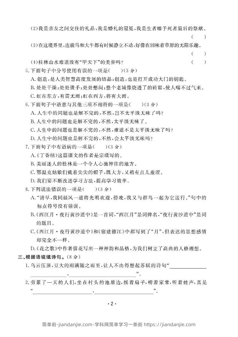 六上语文全册1-8单元测试卷(含答案48页) 简单街 7月前发布 关注 私信 050 六上语文全册1-8单元测试卷(含答案48页)此内容为付费资源,请付费后查看¥1.2黄金会员免费钻石会员免费立即购买您当前未登录!建议登陆后购买,可保存购买订单格式pdf页数48 页大小14.61 MB付费资源 ——预览已结束,还剩46页未读——开通会员后可免费下载高清完整文档 © 版权声明文章版权归作者所有,未经允许请勿转载。THE END小学语文喜欢就支持一下吧点赞0 分享收藏0