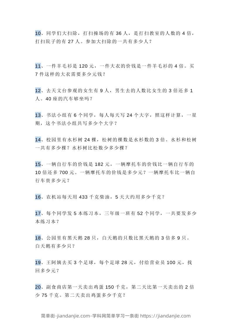 三上数学多位数乘一位数应用题,附答案! 简单街 7月前发布 关注 私信 0260 三上数学多位数乘一位数应用题,附答案!此内容为付费资源,请付费后查看¥2.7黄金会员免费钻石会员免费立即购买您当前未登录!建议登陆后购买,可保存购买订单格式pdf页数9 页大小281.42 KB付费资源 ——预览已结束,还剩7页未读——开通会员后可免费下载高清完整文档 © 版权声明文章版权归作者所有,未经允许请勿转载。THE END小学数学喜欢就支持一下吧点赞0 分享收藏0