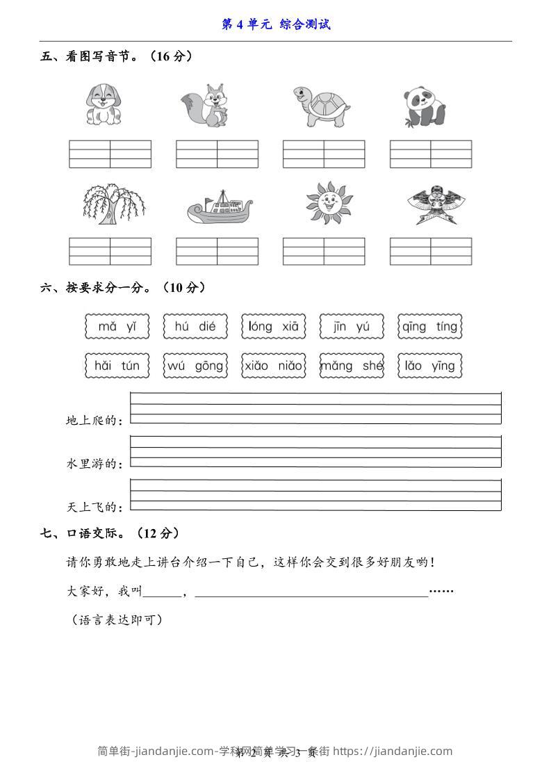 一上语文-第4单元(测试卷) 简单街 4月前发布 关注 私信 0220 一上语文-第4单元(测试卷)此内容为付费资源,请付费后查看¥1.2黄金会员免费钻石会员免费立即购买您当前未登录!建议登陆后购买,可保存购买订单格式pdf页数3 页大小280.67 KB付费资源 ——预览已结束,还剩1页未读——开通会员后可免费下载高清完整文档 © 版权声明文章版权归作者所有,未经允许请勿转载。THE END小学语文喜欢就支持一下吧点赞0 分享收藏0