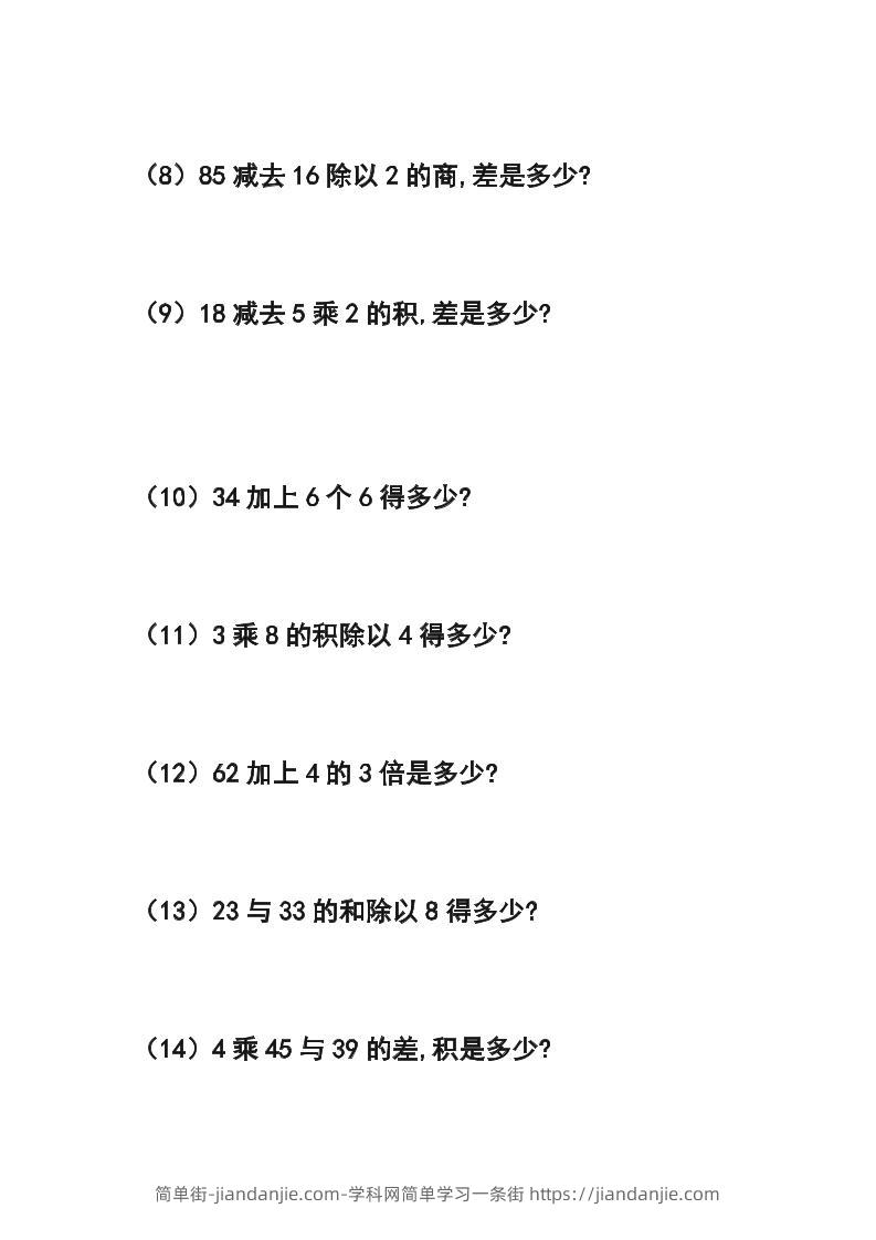 三年级数学上册列式计算专项练习54题 简单街 2月前发布 关注 私信 020 三年级数学上册列式计算专项练习54题此内容为付费资源,请付费后查看¥0.9黄金会员免费钻石会员免费立即购买您当前未登录!建议登陆后购买,可保存购买订单格式pdf页数8 页大小234.13 KB付费资源 ——预览已结束,还剩6页未读——开通会员后可免费下载高清完整文档 © 版权声明文章版权归作者所有,未经允许请勿转载。THE END小学数学喜欢就支持一下吧点赞0 分享收藏0