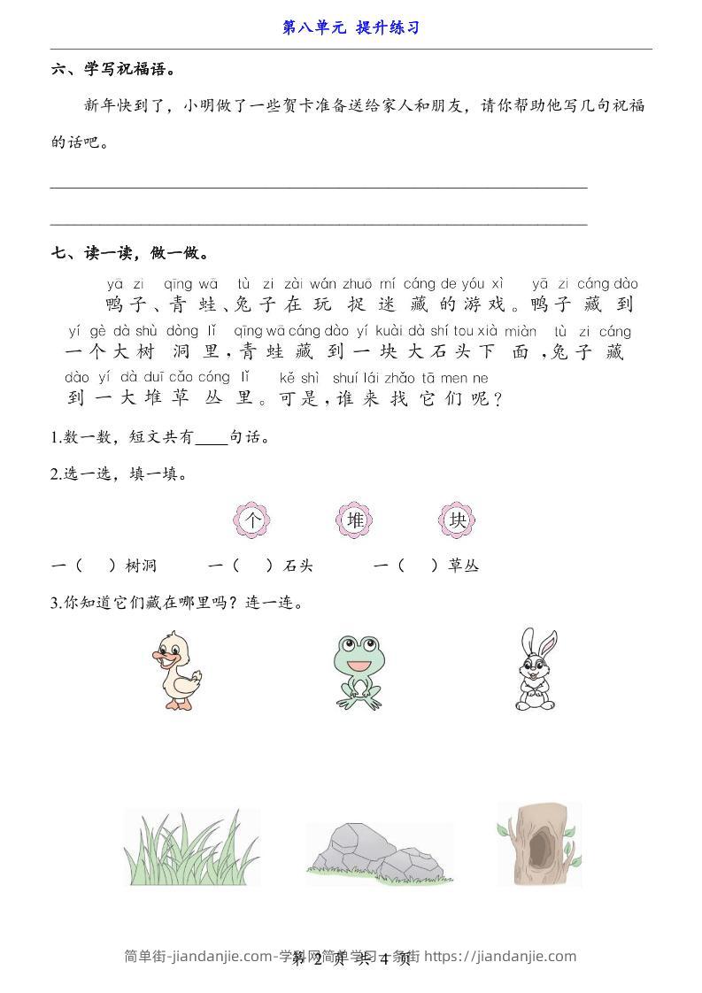 一上语文-第8单元(提升练习) 简单街 6月前发布 关注 私信 0210 一上语文-第8单元(提升练习)此内容为付费资源,请付费后查看¥0.9黄金会员免费钻石会员免费立即购买您当前未登录!建议登陆后购买,可保存购买订单格式pdf页数4 页大小277.60 KB付费资源 ——预览已结束,还剩2页未读——开通会员后可免费下载高清完整文档 © 版权声明文章版权归作者所有,未经允许请勿转载。THE END小学语文喜欢就支持一下吧点赞0 分享收藏0