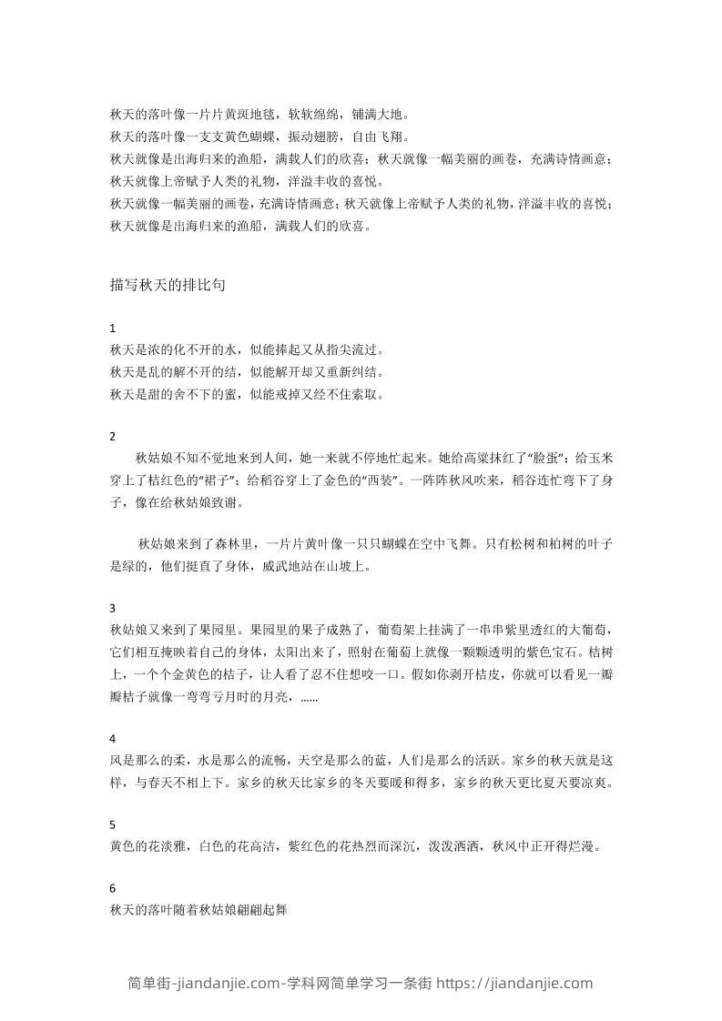 三上语文-描写《秋天》的比喻句和排比句 简单街 7月前发布 关注 私信 020 三上语文-描写《秋天》的比喻句和排比句此内容为付费资源,请付费后查看¥2.7黄金会员免费钻石会员免费立即购买您当前未登录!建议登陆后购买,可保存购买订单格式pdf页数3 页大小815.04 KB付费资源 ——预览已结束,还剩1页未读——开通会员后可免费下载高清完整文档 © 版权声明文章版权归作者所有,未经允许请勿转载。THE END小学语文喜欢就支持一下吧点赞0 分享收藏0