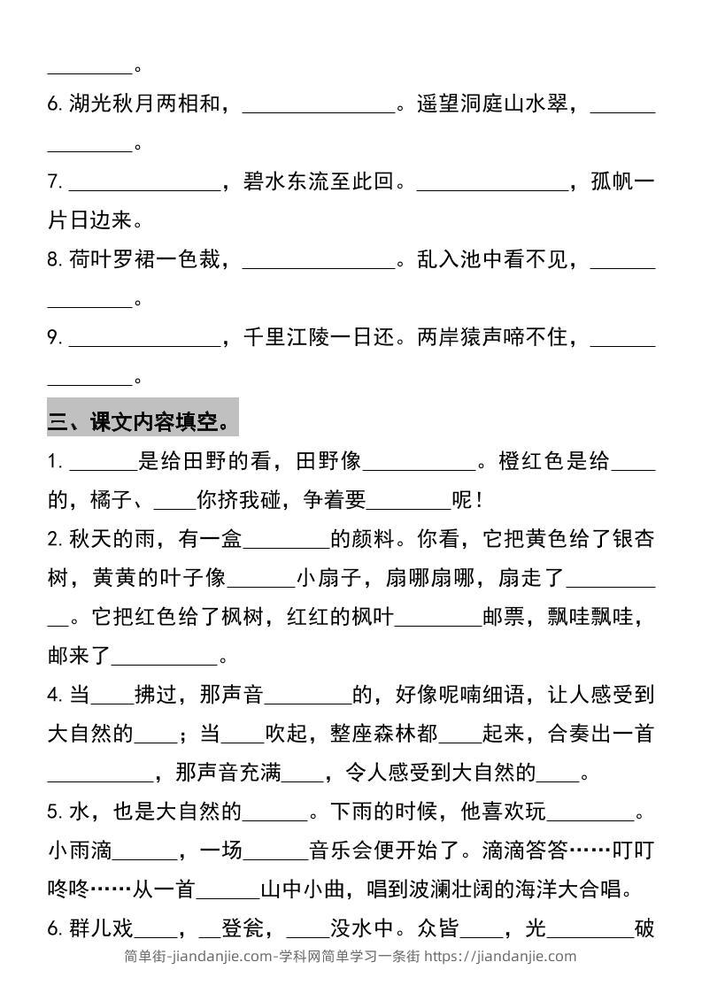 三年级上册语文期末背诵默写专项训练 简单街 7月前发布 关注 私信 020 三年级上册语文期末背诵默写专项训练此内容为付费资源,请付费后查看¥0.9黄金会员免费钻石会员免费立即购买您当前未登录!建议登陆后购买,可保存购买订单格式pdf页数6 页大小452.54 KB付费资源 ——预览已结束,还剩4页未读——开通会员后可免费下载高清完整文档 © 版权声明文章版权归作者所有,未经允许请勿转载。THE END小学语文喜欢就支持一下吧点赞0 分享收藏0