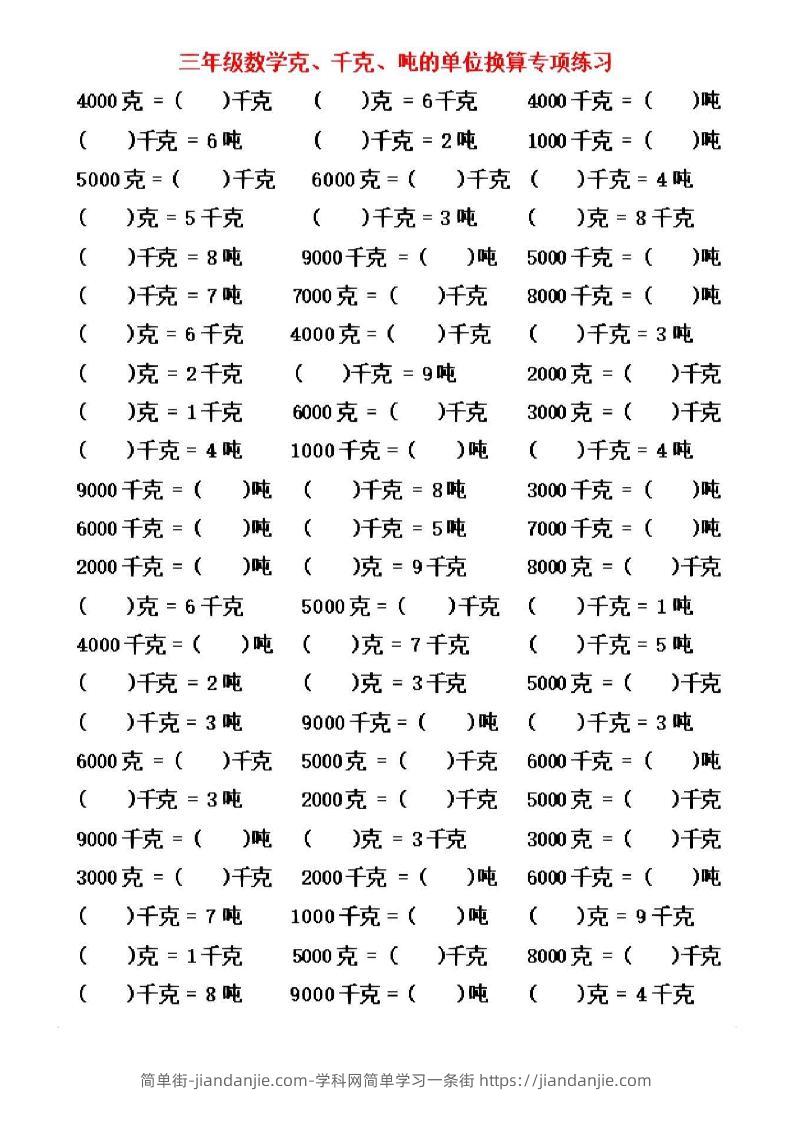 三年级上数学《克、千克、吨》单位换算 简单街 4月前发布 关注 私信 020 三年级上数学《克、千克、吨》单位换算此内容为付费资源,请付费后查看¥1.2黄金会员免费钻石会员免费立即购买您当前未登录!建议登陆后购买,可保存购买订单格式pdf页数6 页大小1.55 MB付费资源 ——预览已结束,还剩4页未读——开通会员后可免费下载高清完整文档 © 版权声明文章版权归作者所有,未经允许请勿转载。THE END小学数学喜欢就支持一下吧点赞0 分享收藏0