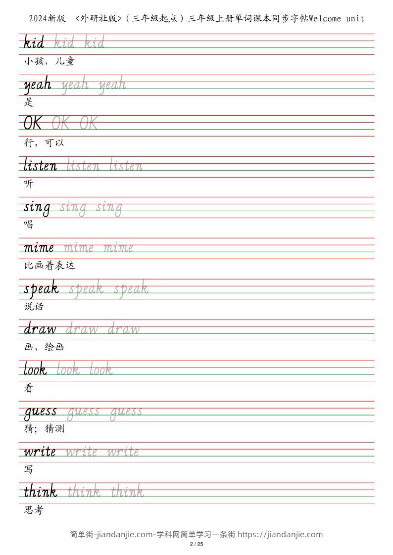 25秋外研社版(三年级起点)三年级上册英语单词课本同步字帖 简单街 2月前发布 关注 私信 050 25秋外研社版(三年级起点)三年级上册英语单词课本同步字帖此内容为付费资源,请付费后查看¥1.5黄金会员免费钻石会员免费立即购买您当前未登录!建议登陆后购买,可保存购买订单格式pdf页数25 页大小917.83 KB付费资源 ——预览已结束,还剩23页未读——开通会员后可免费下载高清完整文档 © 版权声明文章版权归作者所有,未经允许请勿转载。THE END小学英语喜欢就支持一下吧点赞0 分享收藏0