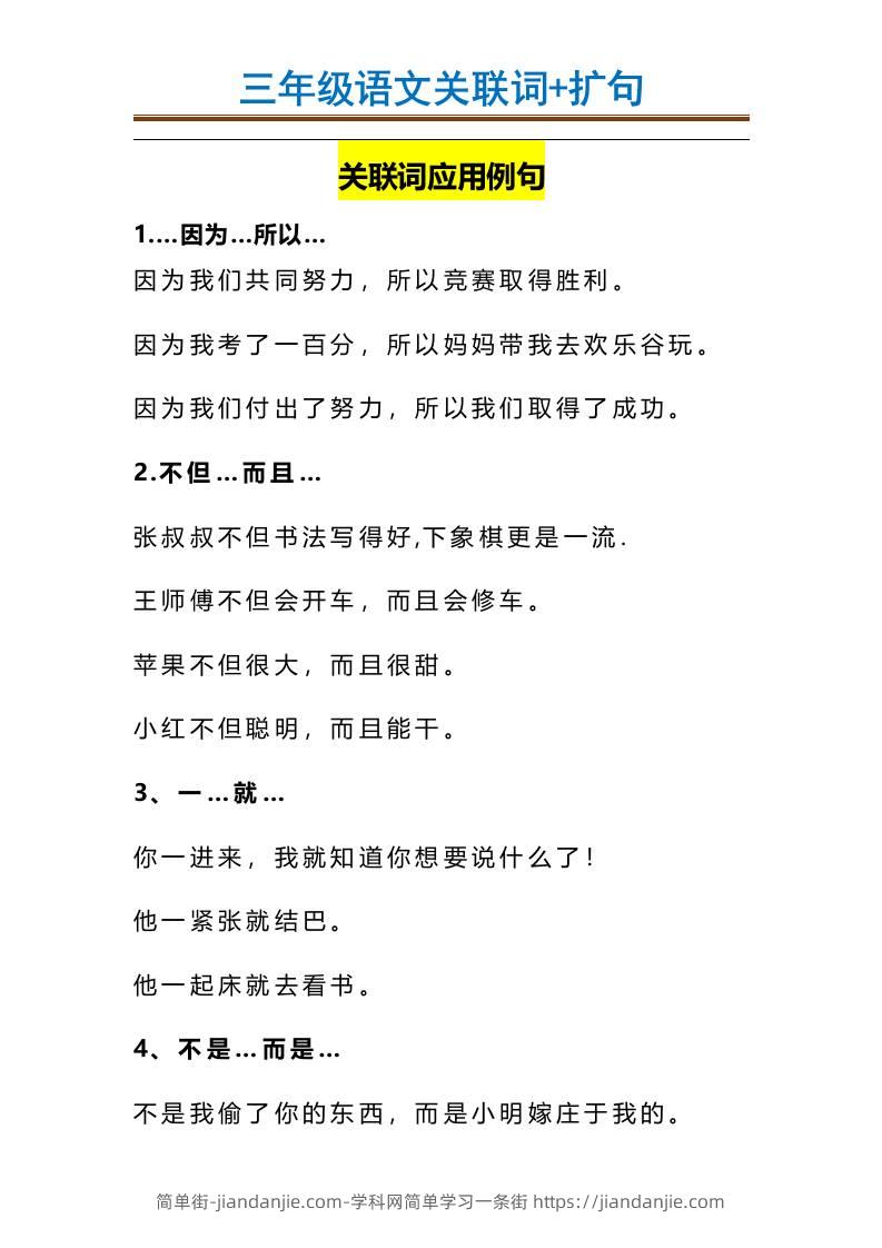 三上语文-造句举例.关联词.常见扩句 简单街 4月前发布 关注 私信 000 三上语文-造句举例.关联词.常见扩句此内容为付费资源,请付费后查看¥1.5黄金会员免费钻石会员免费立即购买您当前未登录!建议登陆后购买,可保存购买订单格式docx页数11 页大小23.27 KB付费资源 ——预览已结束,还剩9页未读——开通会员后可免费下载高清完整文档 © 版权声明文章版权归作者所有,未经允许请勿转载。THE END小学语文喜欢就支持一下吧点赞0 分享收藏0