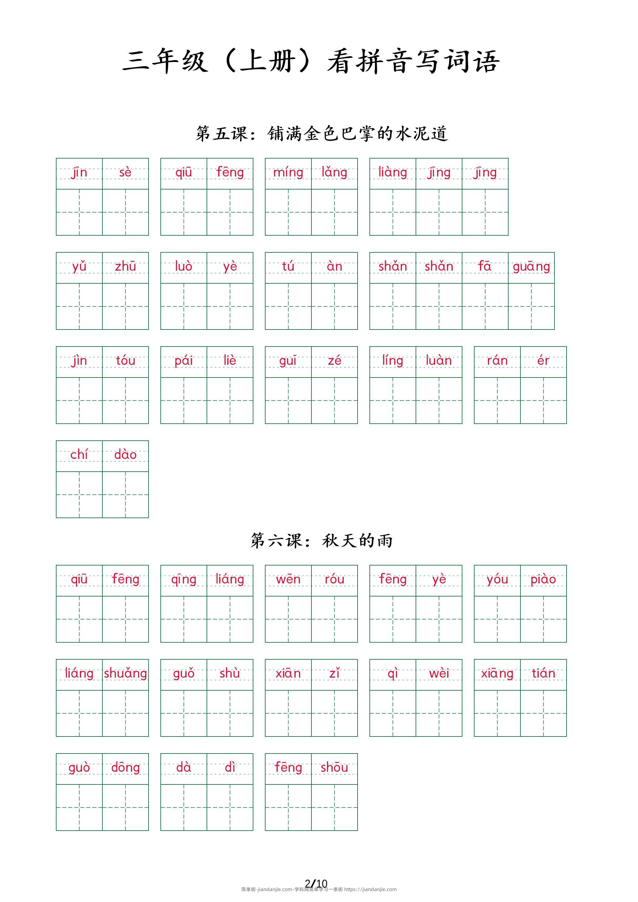 三上语文看拼音写词语+(按课) 简单街 4月前发布 关注 私信 010 三上语文看拼音写词语+(按课)此内容为付费资源,请付费后查看¥2.7黄金会员免费钻石会员免费立即购买您当前未登录!建议登陆后购买,可保存购买订单格式pdf页数10 页大小313.04 KB付费资源 ——预览已结束,还剩8页未读——开通会员后可免费下载高清完整文档 © 版权声明文章版权归作者所有,未经允许请勿转载。THE END小学语文喜欢就支持一下吧点赞0 分享收藏0