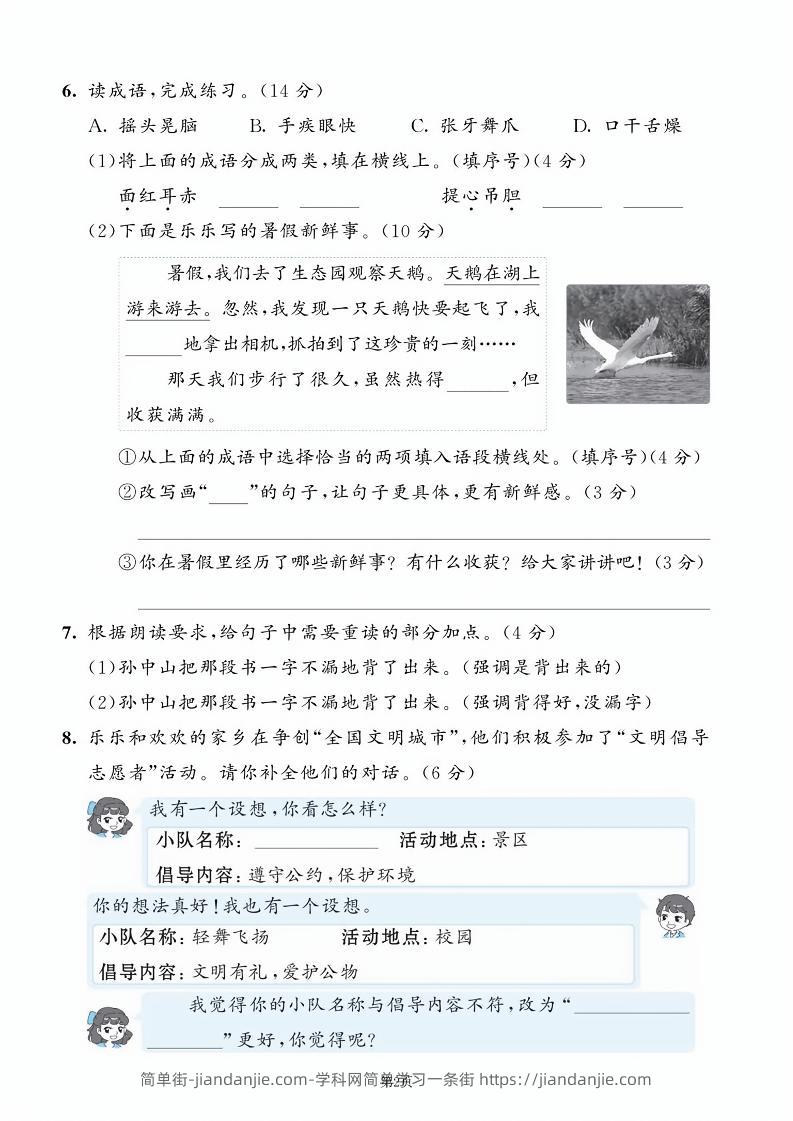 25学年三上语文第一单元拔尖测试卷(含答案5页) 简单街 6月前发布 关注 私信 030 25学年三上语文第一单元拔尖测试卷(含答案5页)此内容为付费资源,请付费后查看¥0.9黄金会员免费钻石会员免费立即购买您当前未登录!建议登陆后购买,可保存购买订单格式pdf页数5 页大小1.81 MB付费资源 ——预览已结束,还剩3页未读——开通会员后可免费下载高清完整文档 © 版权声明文章版权归作者所有,未经允许请勿转载。THE END小学语文喜欢就支持一下吧点赞0 分享收藏0