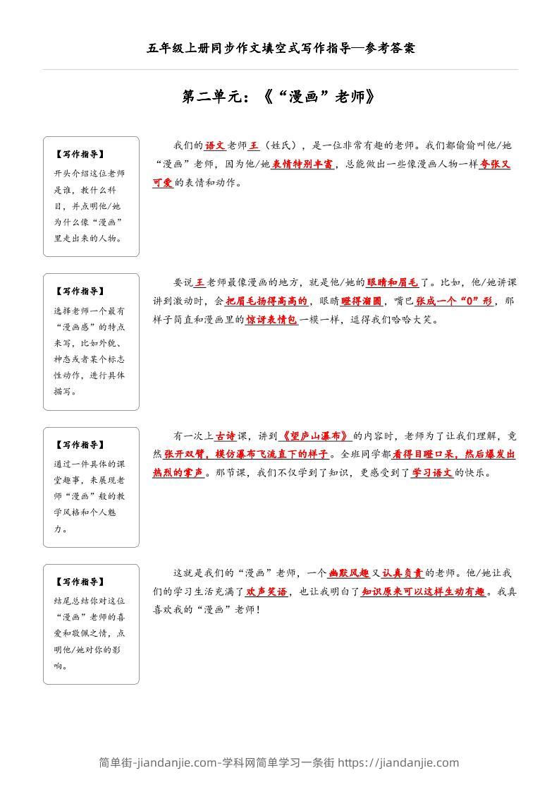五年级上册语文同步作文填空式写作指导(参考答案) 简单街 6月前发布 关注 私信 050 五年级上册语文同步作文填空式写作指导(参考答案)此内容为付费资源,请付费后查看¥0.9黄金会员免费钻石会员免费立即购买您当前未登录!建议登陆后购买,可保存购买订单格式pdf页数8 页大小7.33 MB付费资源 ——预览已结束,还剩6页未读——开通会员后可免费下载高清完整文档 © 版权声明文章版权归作者所有,未经允许请勿转载。THE END小学语文喜欢就支持一下吧点赞0 分享收藏0