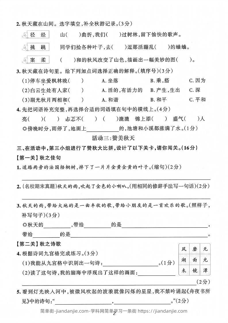 25学年三上语文第二单元综合素养卷-凉爽(含答案5页) 简单街 6月前发布 关注 私信 040 25学年三上语文第二单元综合素养卷-凉爽(含答案5页)此内容为付费资源,请付费后查看¥1.2黄金会员免费钻石会员免费立即购买您当前未登录!建议登陆后购买,可保存购买订单格式pdf页数5 页大小7.41 MB付费资源 ——预览已结束,还剩3页未读——开通会员后可免费下载高清完整文档 © 版权声明文章版权归作者所有,未经允许请勿转载。THE END小学语文喜欢就支持一下吧点赞0 分享收藏0