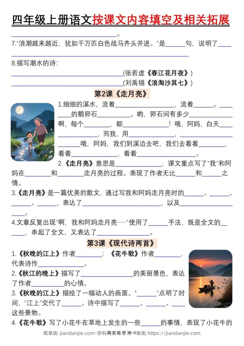 四上语文按课文内容填空及相关拓展(含答案60页) 简单街 6月前发布 关注 私信 030 四上语文按课文内容填空及相关拓展(含答案60页)此内容为付费资源,请付费后查看¥2.7黄金会员免费钻石会员免费立即购买您当前未登录!建议登陆后购买,可保存购买订单格式pdf页数60 页大小34.34 MB付费资源 ——预览已结束,还剩58页未读——开通会员后可免费下载高清完整文档 © 版权声明文章版权归作者所有,未经允许请勿转载。THE END小学语文喜欢就支持一下吧点赞0 分享收藏0