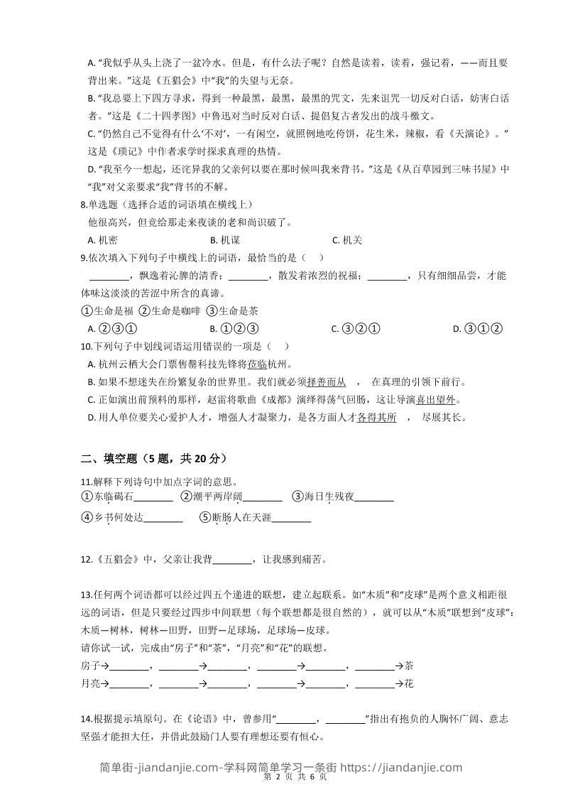 【2025秋新版】部编版初中语文七年级上期中测试卷 简单街 1月前发布 关注 私信 0120 【2025秋新版】部编版初中语文七年级上期中测试卷此内容为付费资源,请付费后查看¥1.2黄金会员免费钻石会员免费立即购买您当前未登录!建议登陆后购买,可保存购买订单格式pdf页数6 页大小252.23 KB付费资源 ——预览已结束,还剩4页未读——开通会员后可免费下载高清完整文档 © 版权声明文章版权归作者所有,未经允许请勿转载。THE END初中语文喜欢就支持一下吧点赞0 分享收藏0