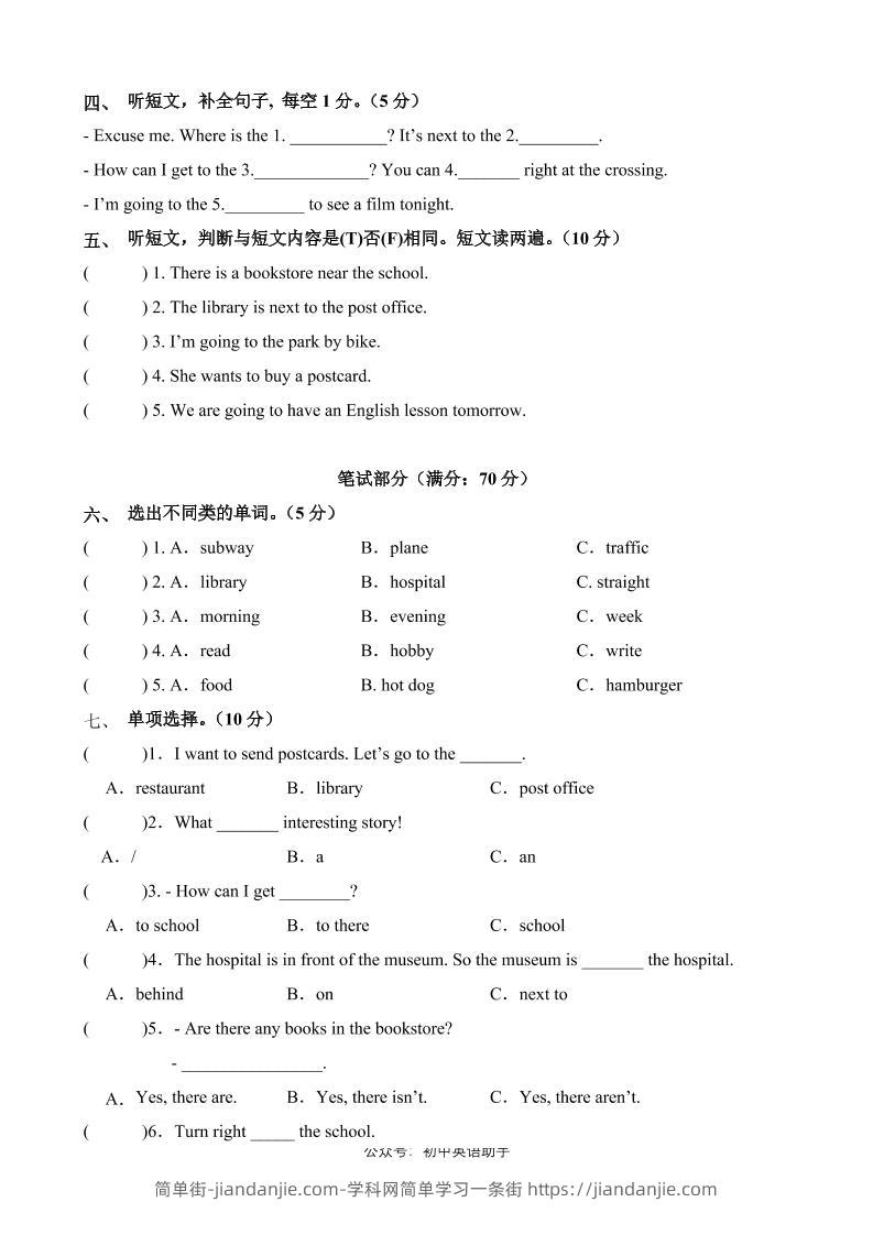 六上人教pep英语第一次月考(Unit1-Unit2)(考试版A4) 简单街 3月前发布 关注 私信 080 六上人教pep英语第一次月考(Unit1-Unit2)(考试版A4)此内容为付费资源,请付费后查看¥1.2黄金会员免费钻石会员免费立即购买您当前未登录!建议登陆后购买,可保存购买订单格式pdf页数5 页大小122.31 KB付费资源 ——预览已结束,还剩3页未读——开通会员后可免费下载高清完整文档 © 版权声明文章版权归作者所有,未经允许请勿转载。THE END小学英语喜欢就支持一下吧点赞0 分享收藏0