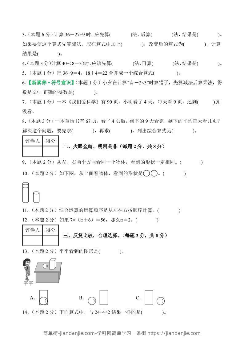 25-26学年三上数学第一次月考(人教版第1-2单元)(考试版A4) 简单街 6月前发布 关注 私信 040 25-26学年三上数学第一次月考(人教版第1-2单元)(考试版A4)此内容为付费资源,请付费后查看¥0.9黄金会员免费钻石会员免费立即购买您当前未登录!建议登陆后购买,可保存购买订单格式pdf页数6 页大小794.79 KB付费资源 ——预览已结束,还剩4页未读——开通会员后可免费下载高清完整文档 © 版权声明文章版权归作者所有,未经允许请勿转载。THE END小学数学喜欢就支持一下吧点赞0 分享收藏0