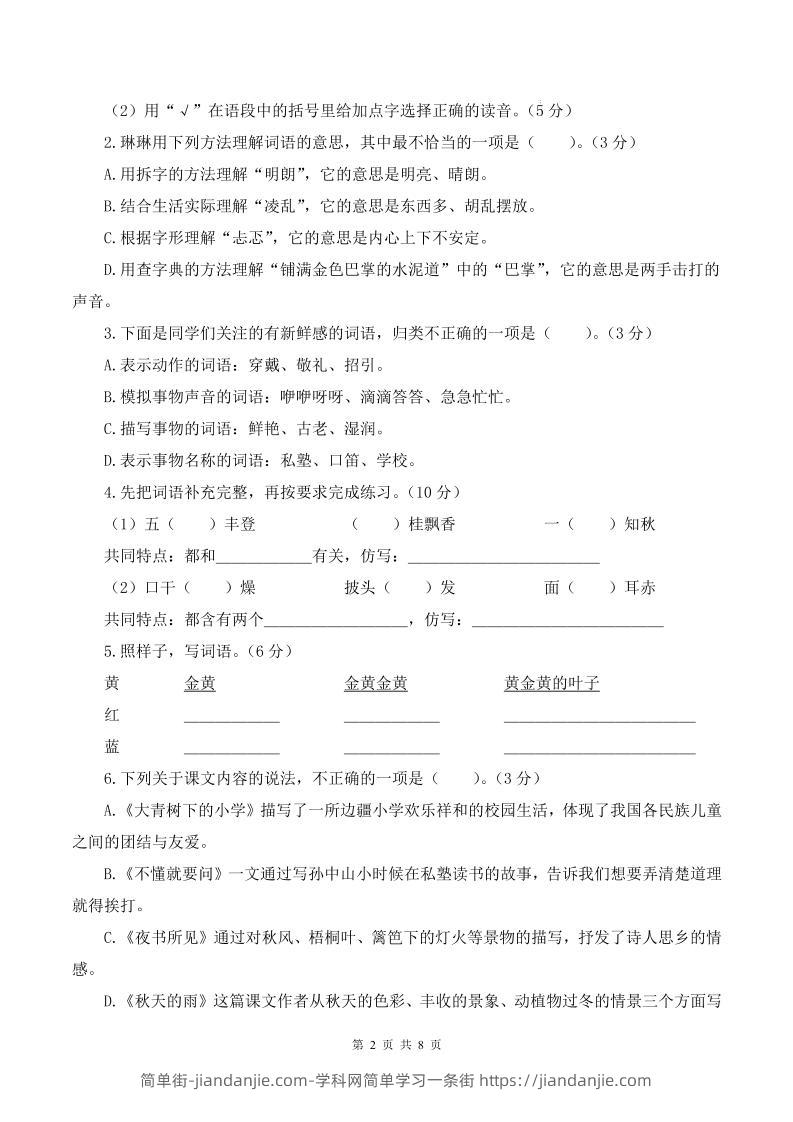 25-26学年三上语文第一次月考质量检测卷(含答题卡+答案16页) 简单街 6月前发布 关注 私信 030 25-26学年三上语文第一次月考质量检测卷(含答题卡+答案16页)此内容为付费资源,请付费后查看¥2.7黄金会员免费钻石会员免费立即购买您当前未登录!建议登陆后购买,可保存购买订单格式pdf页数16 页大小1.30 MB付费资源 ——预览已结束,还剩14页未读——开通会员后可免费下载高清完整文档 © 版权声明文章版权归作者所有,未经允许请勿转载。THE END小学语文喜欢就支持一下吧点赞0 分享收藏0