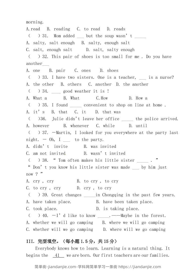 【2025秋新版】九年级上第一学期【英语】期中测试模拟卷(含答案) 简单街 3月前发布 关注 私信 030 【2025秋新版】九年级上第一学期【英语】期中测试模拟卷(含答案)此内容为付费资源,请付费后查看¥1.5黄金会员免费钻石会员免费立即购买您当前未登录!建议登陆后购买,可保存购买订单格式pdf页数23 页大小162.78 KB付费资源 ——预览已结束,还剩21页未读——开通会员后可免费下载高清完整文档 © 版权声明文章版权归作者所有,未经允许请勿转载。THE END初中英语喜欢就支持一下吧点赞0 分享收藏0