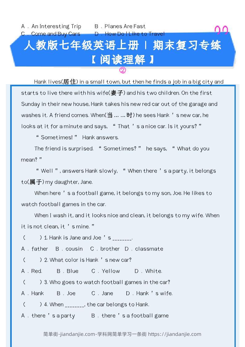 【2025秋新版】人教版七年级英语上册_期末复习专练【阅读理解】 简单街 3月前发布 关注 私信 060 【2025秋新版】人教版七年级英语上册_期末复习专练【阅读理解】此内容为付费资源,请付费后查看¥1.5黄金会员免费钻石会员免费立即购买您当前未登录!建议登陆后购买,可保存购买订单格式pdf页数9 页大小160.54 KB付费资源 ——预览已结束,还剩7页未读——开通会员后可免费下载高清完整文档 © 版权声明文章版权归作者所有,未经允许请勿转载。THE END初中英语喜欢就支持一下吧点赞0 分享收藏0