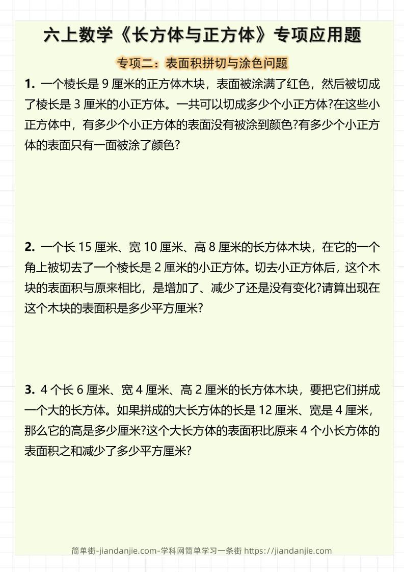 六上数学《长方体与正方体》专项应用题(含答案8页) 简单街 3月前发布 关注 私信 030 六上数学《长方体与正方体》专项应用题(含答案8页)此内容为付费资源,请付费后查看¥2.7黄金会员免费钻石会员免费立即购买您当前未登录!建议登陆后购买,可保存购买订单格式pdf页数8 页大小878.65 KB付费资源 ——预览已结束,还剩6页未读——开通会员后可免费下载高清完整文档 © 版权声明文章版权归作者所有,未经允许请勿转载。THE END小学数学喜欢就支持一下吧点赞0 分享收藏0