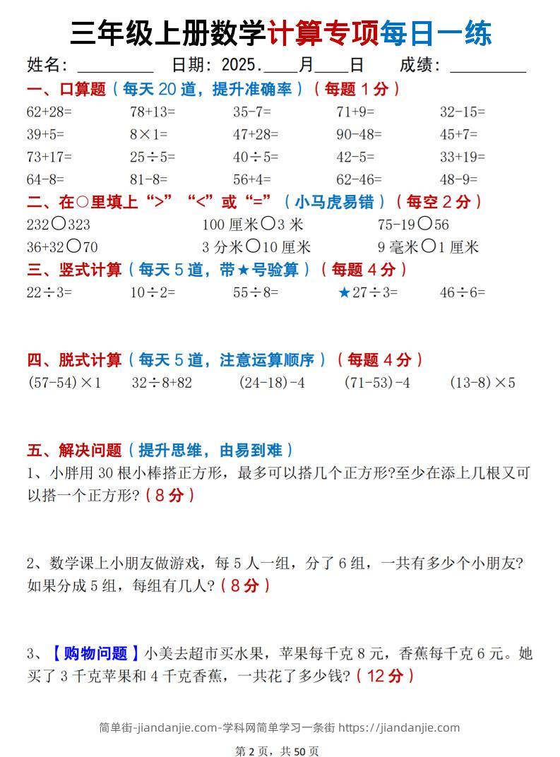 三上数学计算专项每日一练50天(口算填空竖式脱式解决问题思维题)50页 简单街 1月前发布 关注 私信 030 三上数学计算专项每日一练50天(口算填空竖式脱式解决问题思维题)50页此内容为付费资源,请付费后查看¥2.7黄金会员免费钻石会员免费立即购买您当前未登录!建议登陆后购买,可保存购买订单格式pdf页数50 页大小19.10 MB付费资源 ——预览已结束,还剩48页未读——开通会员后可免费下载高清完整文档 © 版权声明文章版权归作者所有,未经允许请勿转载。THE END小学数学喜欢就支持一下吧点赞0 分享收藏0