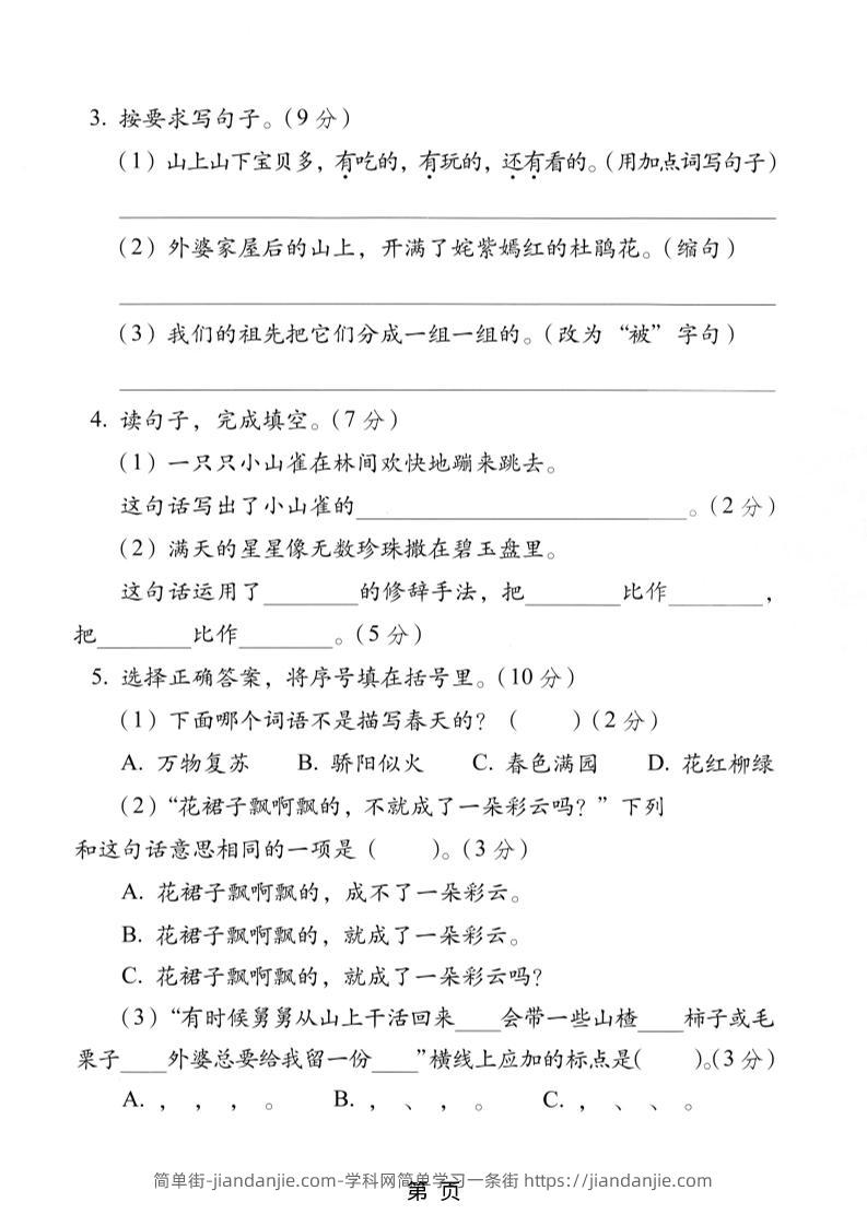 25学年二上语文第三单元过关检测卷(含答案5页) 简单街 6月前发布 关注 私信 0160 25学年二上语文第三单元过关检测卷(含答案5页)此内容为付费资源,请付费后查看¥1.2黄金会员免费钻石会员免费立即购买您当前未登录!建议登陆后购买,可保存购买订单格式pdf页数5 页大小15.76 MB付费资源 ——预览已结束,还剩3页未读——开通会员后可免费下载高清完整文档 © 版权声明文章版权归作者所有,未经允许请勿转载。THE END小学语文喜欢就支持一下吧点赞0 分享收藏0
