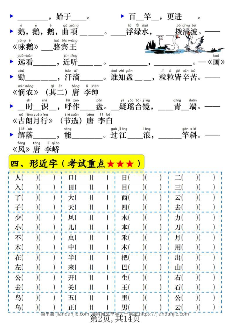 一年级上语文期末常考重点知识练习 简单街 2月前发布 关注 私信 010 一年级上语文期末常考重点知识练习此内容为付费资源,请付费后查看¥1.5黄金会员免费钻石会员免费立即购买您当前未登录!建议登陆后购买,可保存购买订单格式pdf页数14 页大小20.49 MB付费资源 ——预览已结束,还剩12页未读——开通会员后可免费下载高清完整文档 © 版权声明文章版权归作者所有,未经允许请勿转载。THE END小学语文喜欢就支持一下吧点赞0 分享收藏0