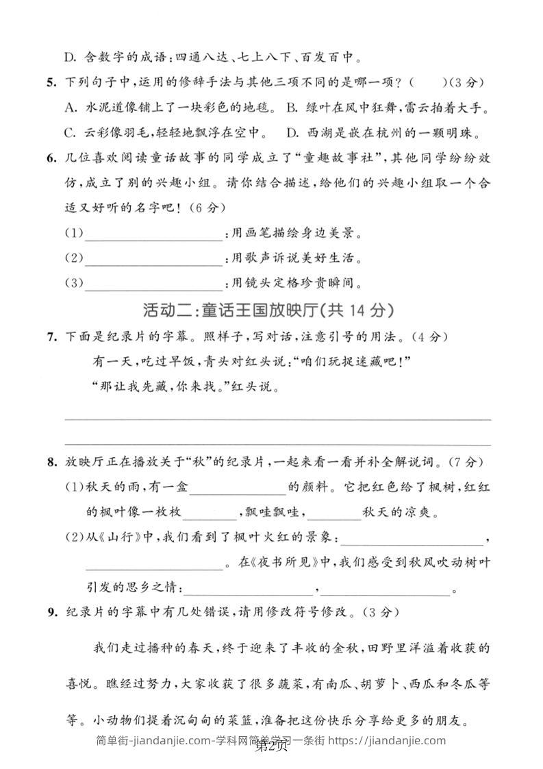 三年级上册语文期中情景测试卷2 简单街 35天前发布 关注 私信 000 三年级上册语文期中情景测试卷2此内容为付费资源,请付费后查看¥1.2黄金会员免费钻石会员免费立即购买您当前未登录!建议登陆后购买,可保存购买订单格式pdf页数5 页大小12.34 MB付费资源 ——预览已结束,还剩3页未读——开通会员后可免费下载高清完整文档 © 版权声明文章版权归作者所有,未经允许请勿转载。THE END小学语文喜欢就支持一下吧点赞0 分享收藏0