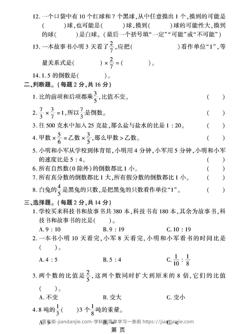 六上数学【青岛63期中试卷】 简单街 32天前发布 关注 私信 040 六上数学【青岛63期中试卷】此内容为付费资源,请付费后查看¥1.5黄金会员免费钻石会员免费立即购买您当前未登录!建议登陆后购买,可保存购买订单格式pdf页数5 页大小3.19 MB付费资源 ——预览已结束,还剩3页未读——开通会员后可免费下载高清完整文档 © 版权声明文章版权归作者所有,未经允许请勿转载。THE END小学数学喜欢就支持一下吧点赞0 分享收藏0