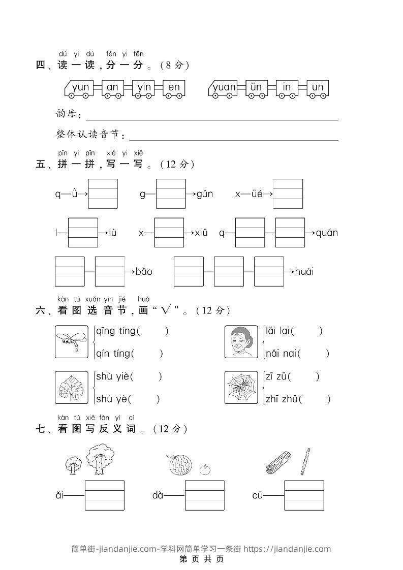 一年级上语文汉语拼音专项测试卷 简单街 5月前发布 关注 私信 030 一年级上语文汉语拼音专项测试卷此内容为付费资源,请付费后查看¥1.5黄金会员免费钻石会员免费立即购买您当前未登录!建议登陆后购买,可保存购买订单格式pdf页数6 页大小3.49 MB付费资源 ——预览已结束,还剩4页未读——开通会员后可免费下载高清完整文档 © 版权声明文章版权归作者所有,未经允许请勿转载。THE END小学语文喜欢就支持一下吧点赞0 分享收藏0