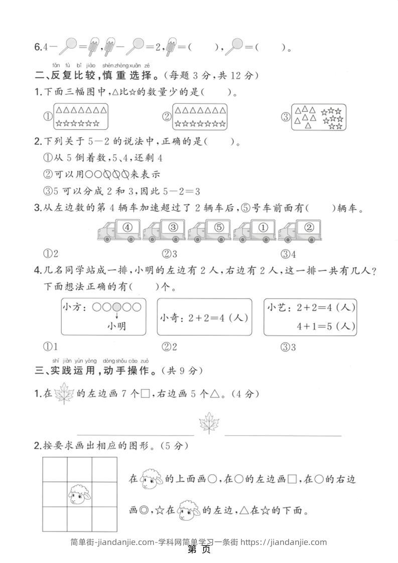 一年级上数学期中测试卷《北师版》 简单街 2月前发布 关注 私信 030 一年级上数学期中测试卷《北师版》此内容为付费资源,请付费后查看¥0.9黄金会员免费钻石会员免费立即购买您当前未登录!建议登陆后购买,可保存购买订单格式pdf页数5 页大小7.67 MB付费资源 ——预览已结束,还剩3页未读——开通会员后可免费下载高清完整文档 © 版权声明文章版权归作者所有,未经允许请勿转载。THE END小学数学喜欢就支持一下吧点赞0 分享收藏0