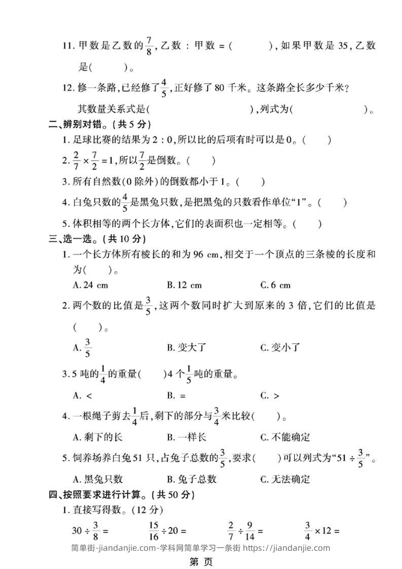 六年级上数学期中模拟测试卷《苏教版》 简单街 2月前发布 关注 私信 030 六年级上数学期中模拟测试卷《苏教版》此内容为付费资源,请付费后查看¥1.2黄金会员免费钻石会员免费立即购买您当前未登录!建议登陆后购买,可保存购买订单格式pdf页数4 页大小2.68 MB付费资源 ——预览已结束,还剩2页未读——开通会员后可免费下载高清完整文档 © 版权声明文章版权归作者所有,未经允许请勿转载。THE END小学数学喜欢就支持一下吧点赞0 分享收藏0