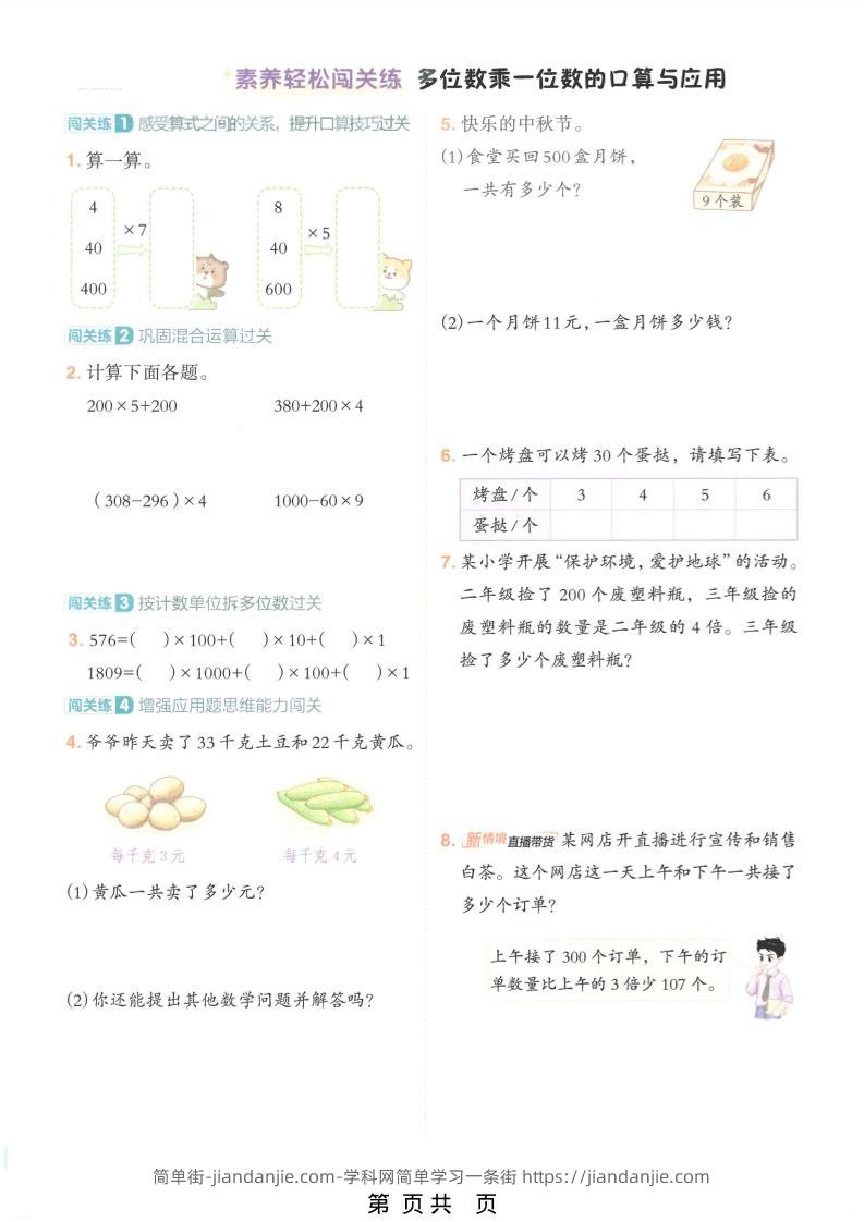 三年级上数学多位数乘一位数专项练习 简单街 2月前发布 关注 私信 040 三年级上数学多位数乘一位数专项练习此内容为付费资源,请付费后查看¥2.7黄金会员免费钻石会员免费立即购买您当前未登录!建议登陆后购买,可保存购买订单格式pdf页数18 页大小18.86 MB付费资源 ——预览已结束,还剩16页未读——开通会员后可免费下载高清完整文档 © 版权声明文章版权归作者所有,未经允许请勿转载。THE END小学数学喜欢就支持一下吧点赞0 分享收藏0
