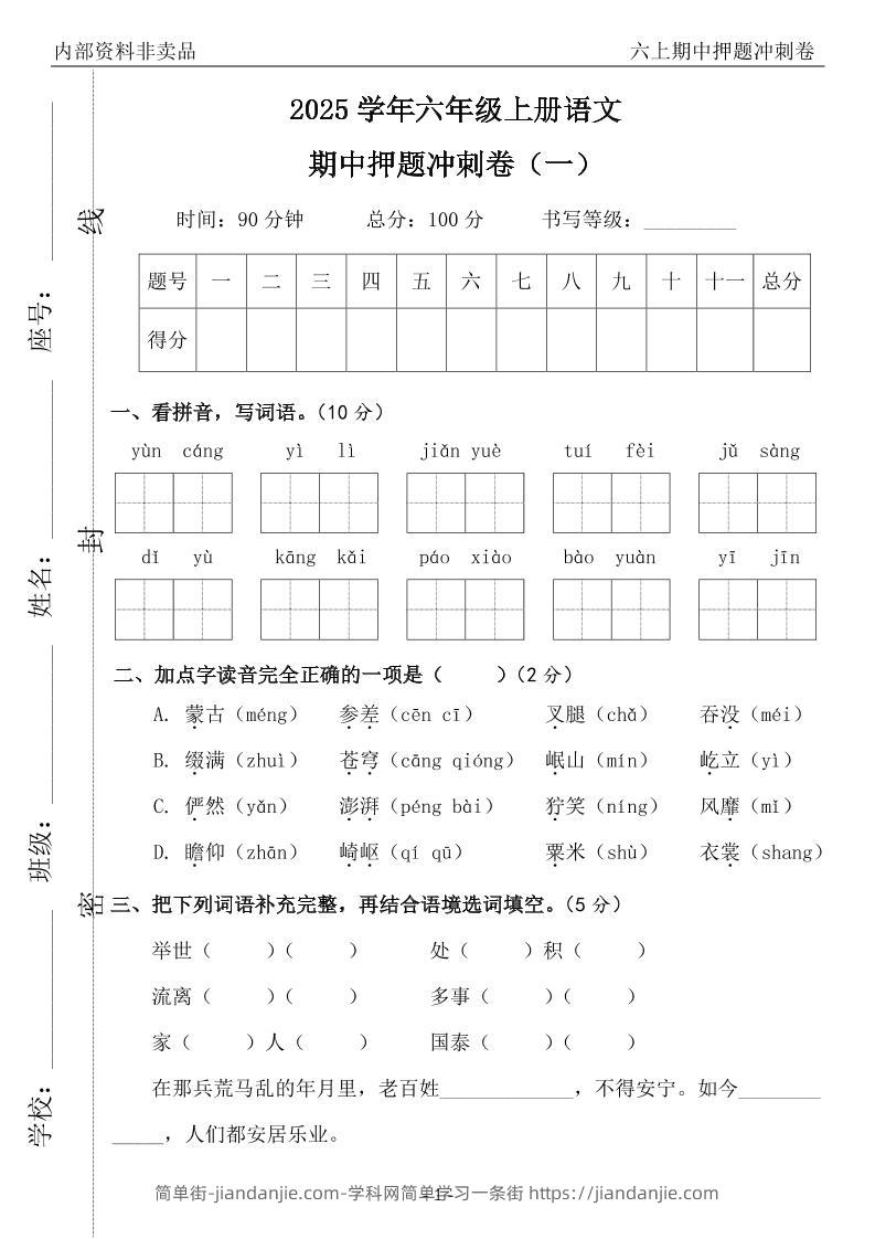 六上语文期中押题冲刺卷5套(含答案39页) 简单街 2月前发布 关注 私信 030 六上语文期中押题冲刺卷5套(含答案39页)此内容为付费资源,请付费后查看¥0.9黄金会员免费钻石会员免费立即购买您当前未登录!建议登陆后购买,可保存购买订单格式pdf页数39 页大小961.98 KB付费资源 ——预览已结束,还剩37页未读——开通会员后可免费下载高清完整文档 © 版权声明文章版权归作者所有,未经允许请勿转载。THE END小学语文喜欢就支持一下吧点赞0 分享收藏0