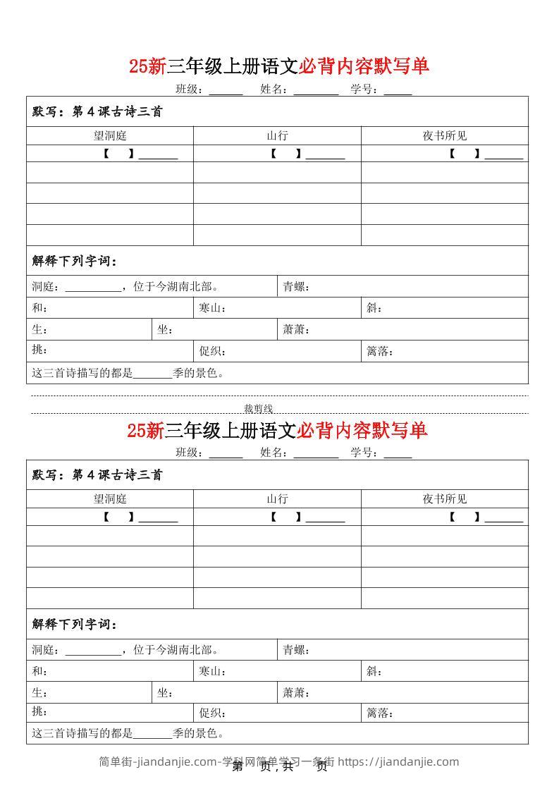 25新三上语文必背内容默写单(含答案21页) 简单街 27天前发布 关注 私信 040 25新三上语文必背内容默写单(含答案21页)此内容为付费资源,请付费后查看¥1.2黄金会员免费钻石会员免费立即购买您当前未登录!建议登陆后购买,可保存购买订单格式pdf页数21 页大小419.79 KB付费资源 ——预览已结束,还剩19页未读——开通会员后可免费下载高清完整文档 © 版权声明文章版权归作者所有,未经允许请勿转载。THE END小学语文喜欢就支持一下吧点赞0 分享收藏0
