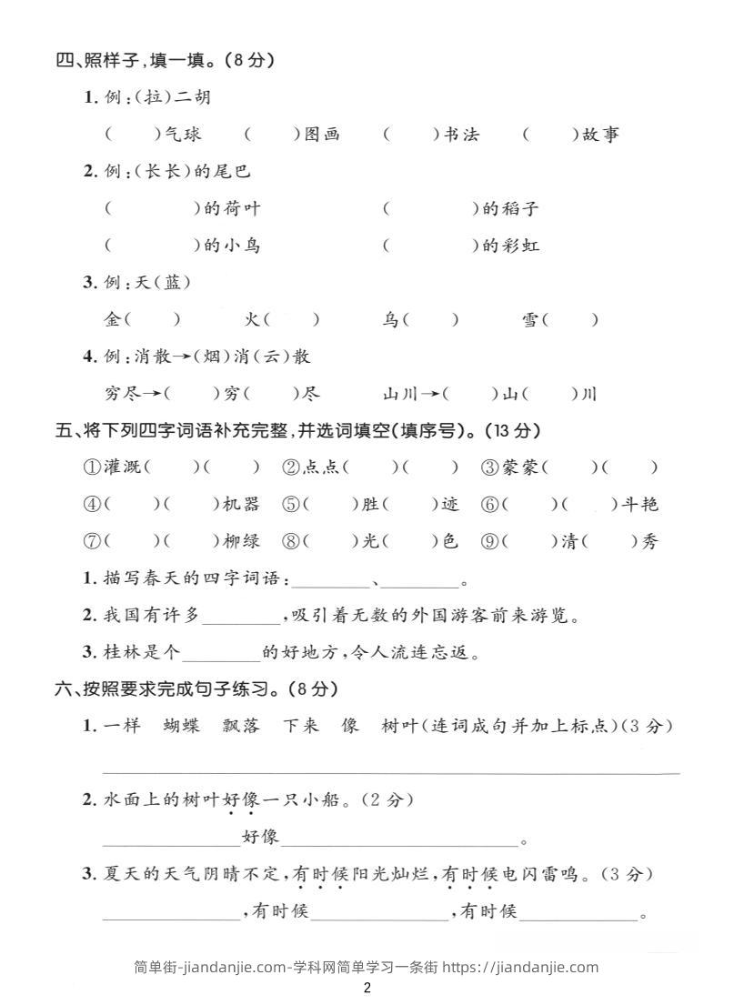 二年级上语文期中拔尖测试卷A卷 简单街 5月前发布 关注 私信 050 二年级上语文期中拔尖测试卷A卷此内容为付费资源,请付费后查看¥0.9黄金会员免费钻石会员免费立即购买您当前未登录!建议登陆后购买,可保存购买订单格式pdf页数5 页大小16.39 MB付费资源 ——预览已结束,还剩3页未读——开通会员后可免费下载高清完整文档 © 版权声明文章版权归作者所有,未经允许请勿转载。THE END小学语文喜欢就支持一下吧点赞0 分享收藏0