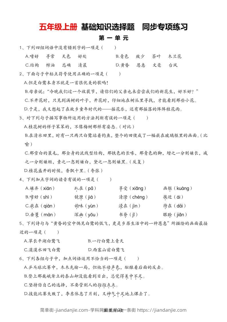 五上语文期中1-4单元选择题专项训练(空白) 简单街 25天前发布 关注 私信 020 五上语文期中1-4单元选择题专项训练(空白)此内容为付费资源,请付费后查看¥0.9黄金会员免费钻石会员免费立即购买您当前未登录!建议登陆后购买,可保存购买订单格式pdf页数35 页大小12.22 MB付费资源 ——预览已结束,还剩33页未读——开通会员后可免费下载高清完整文档 © 版权声明文章版权归作者所有,未经允许请勿转载。THE END小学语文喜欢就支持一下吧点赞0 分享收藏0