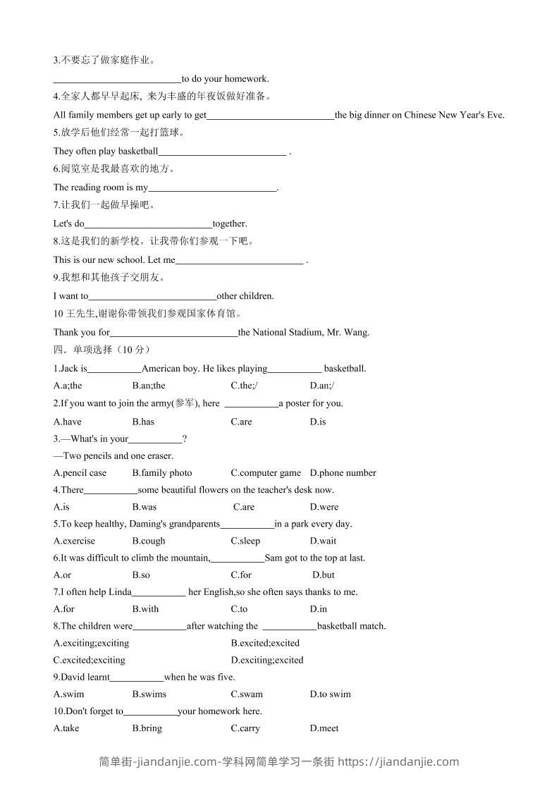 七年级上英语Starter单元测试 简单街 20天前发布 关注 私信 030 七年级上英语Starter单元测试此内容为付费资源,请付费后查看¥1.5黄金会员免费钻石会员免费立即购买您当前未登录!建议登陆后购买,可保存购买订单格式pdf页数13 页大小411.51 KB付费资源 ——预览已结束,还剩11页未读——开通会员后可免费下载高清完整文档 © 版权声明文章版权归作者所有,未经允许请勿转载。THE END初中英语喜欢就支持一下吧点赞0 分享收藏0