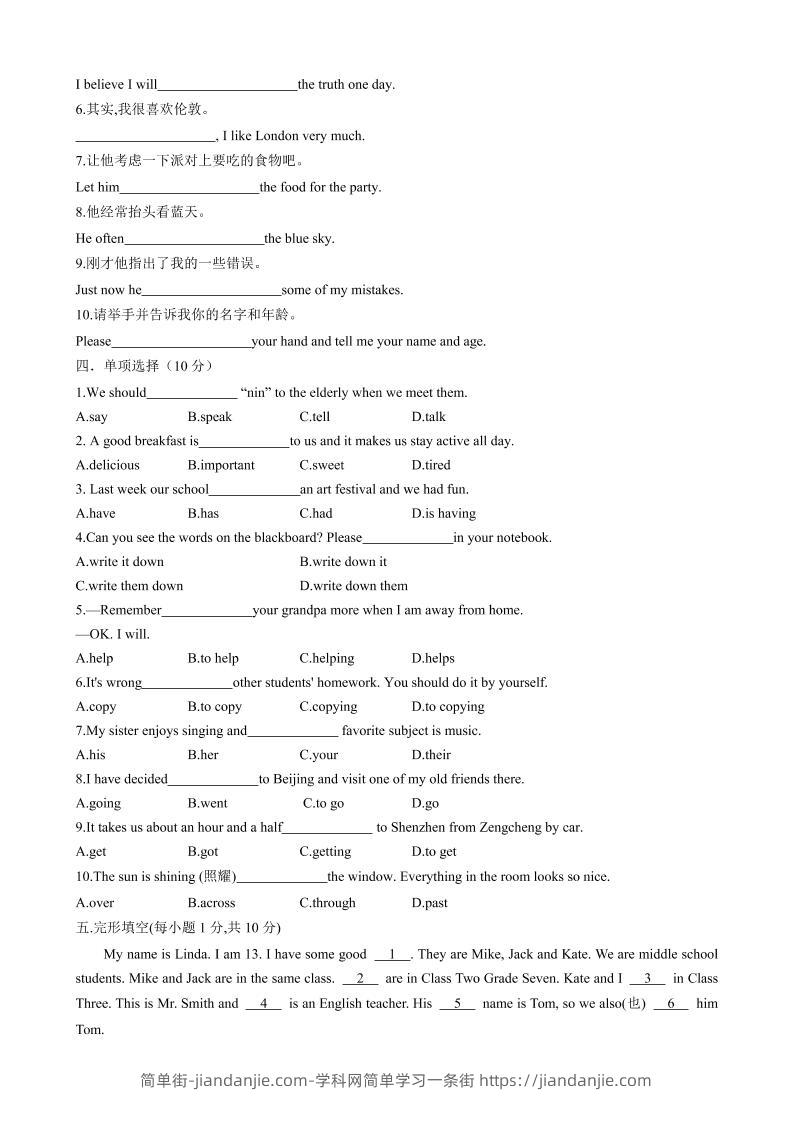七年级上英语Unit1单元测试 简单街 2月前发布 关注 私信 030 七年级上英语Unit1单元测试此内容为付费资源,请付费后查看¥1.2黄金会员免费钻石会员免费立即购买您当前未登录!建议登陆后购买,可保存购买订单格式pdf页数14 页大小357.66 KB付费资源 ——预览已结束,还剩12页未读——开通会员后可免费下载高清完整文档 © 版权声明文章版权归作者所有,未经允许请勿转载。THE END初中英语喜欢就支持一下吧点赞0 分享收藏0