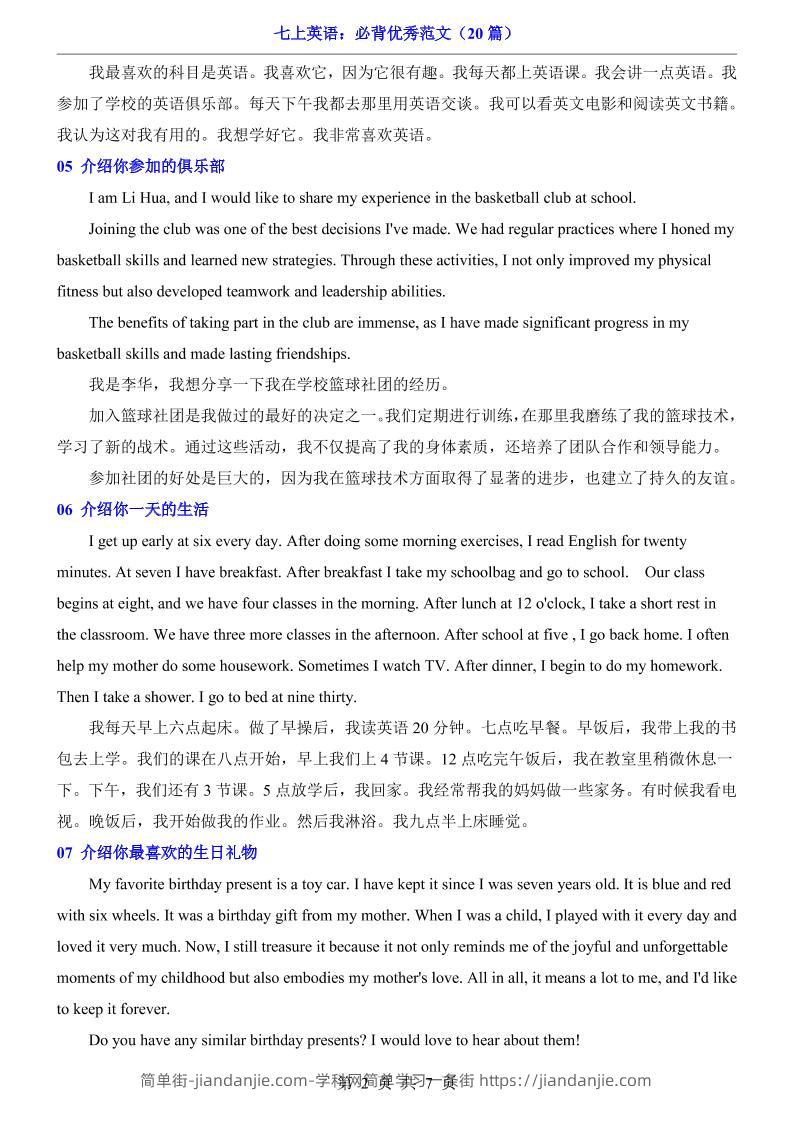 七年级上英语必背优秀范文(20篇) 简单街 22天前发布 关注 私信 030 七年级上英语必背优秀范文(20篇)此内容为付费资源,请付费后查看¥0.9黄金会员免费钻石会员免费立即购买您当前未登录!建议登陆后购买,可保存购买订单格式pdf页数7 页大小208.74 KB付费资源 ——预览已结束,还剩5页未读——开通会员后可免费下载高清完整文档 © 版权声明文章版权归作者所有,未经允许请勿转载。THE END初中英语喜欢就支持一下吧点赞0 分享收藏0