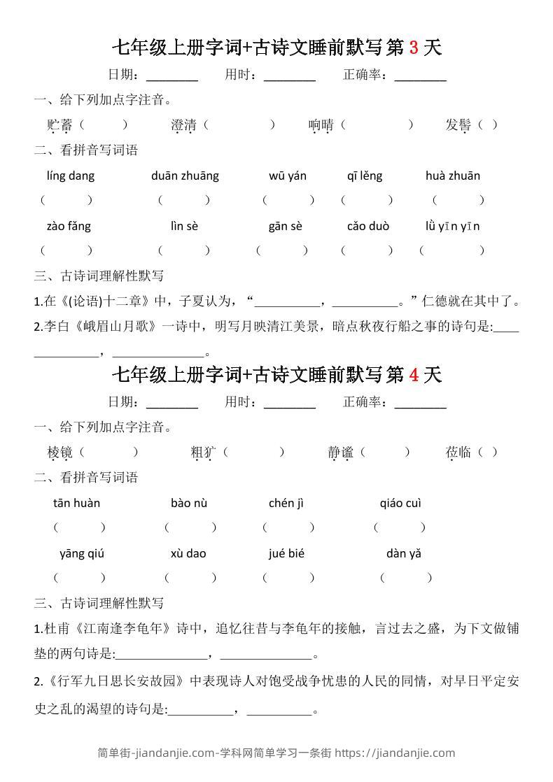 七年级上语文字词古诗睡前默写 简单街 21天前发布 关注 私信 030 七年级上语文字词古诗睡前默写此内容为付费资源,请付费后查看¥0.9黄金会员免费钻石会员免费立即购买您当前未登录!建议登陆后购买,可保存购买订单格式pdf页数20 页大小561.18 KB付费资源 ——预览已结束,还剩18页未读——开通会员后可免费下载高清完整文档 © 版权声明文章版权归作者所有,未经允许请勿转载。THE END初中语文喜欢就支持一下吧点赞0 分享收藏0