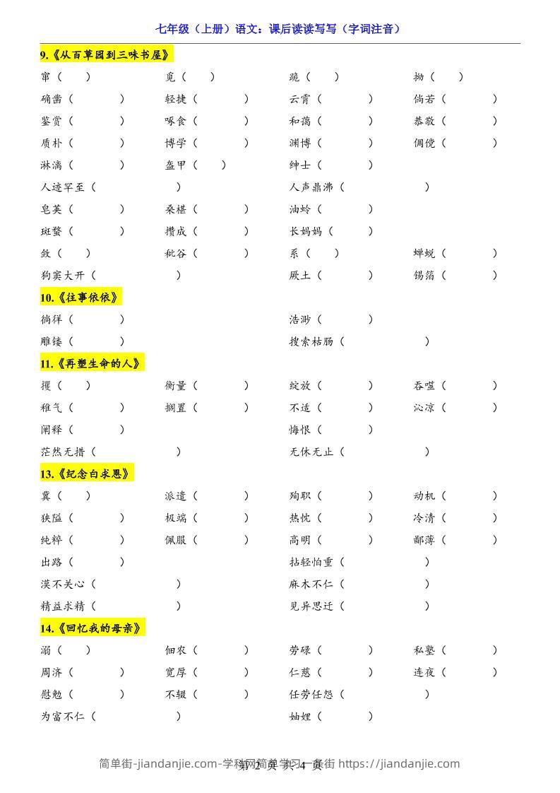 七年级上语文课后读读写写字词注音 简单街 27天前发布 关注 私信 020 七年级上语文课后读读写写字词注音此内容为付费资源,请付费后查看¥2.7黄金会员免费钻石会员免费立即购买您当前未登录!建议登陆后购买,可保存购买订单格式pdf页数9 页大小470.39 KB付费资源 ——预览已结束,还剩7页未读——开通会员后可免费下载高清完整文档 © 版权声明文章版权归作者所有,未经允许请勿转载。THE END初中语文喜欢就支持一下吧点赞0 分享收藏0