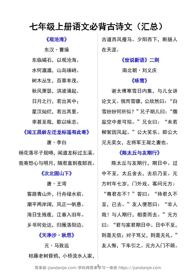 七年级上语文必背古诗文汇总 简单街 20天前发布 关注 私信 040 七年级上语文必背古诗文汇总此内容为付费资源,请付费后查看¥2.7黄金会员免费钻石会员免费立即购买您当前未登录!建议登陆后购买,可保存购买订单格式pdf页数5 页大小257.85 KB付费资源 ——预览已结束,还剩3页未读——开通会员后可免费下载高清完整文档 © 版权声明文章版权归作者所有,未经允许请勿转载。THE END初中语文喜欢就支持一下吧点赞0 分享收藏0