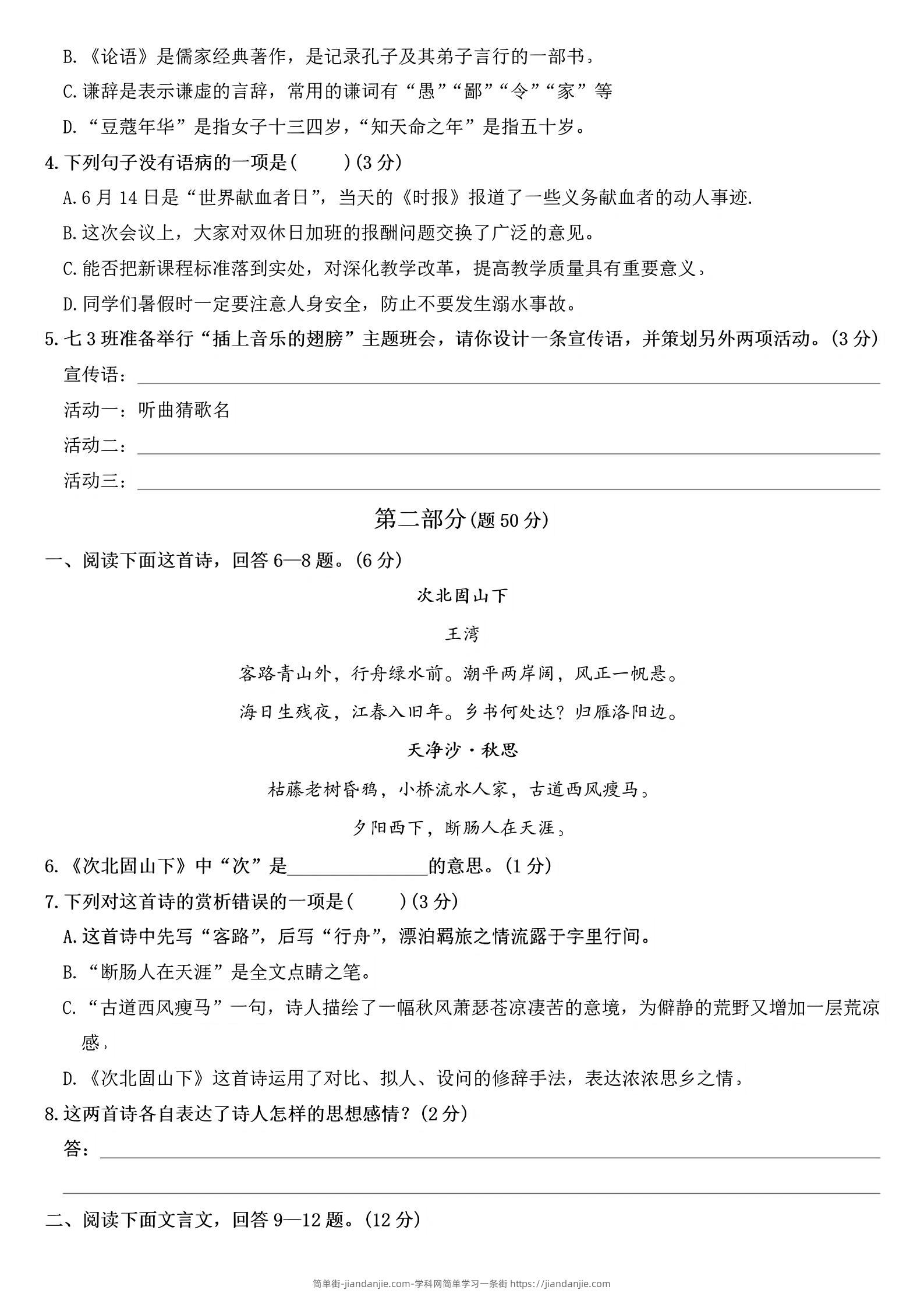 七年级上语文第一学期预习检测 简单街 19天前发布 关注 私信 040 七年级上语文第一学期预习检测此内容为付费资源,请付费后查看¥1.2黄金会员免费钻石会员免费立即购买您当前未登录!建议登陆后购买,可保存购买订单格式pdf页数7 页大小2.17 MB付费资源 ——预览已结束,还剩5页未读——开通会员后可免费下载高清完整文档 © 版权声明文章版权归作者所有,未经允许请勿转载。THE END初中语文喜欢就支持一下吧点赞0 分享收藏0