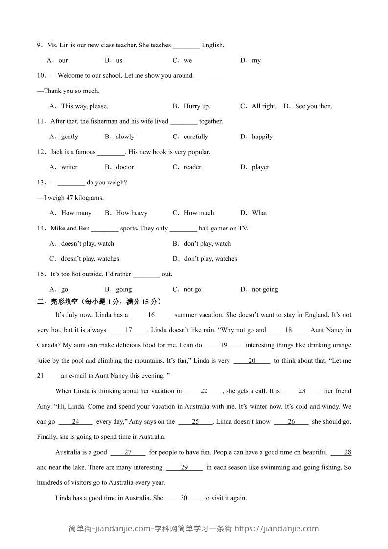 七年级上英语第一次月考卷(徐州专用) 简单街 18天前发布 关注 私信 020 七年级上英语第一次月考卷(徐州专用)此内容为付费资源,请付费后查看¥1.5黄金会员免费钻石会员免费立即购买您当前未登录!建议登陆后购买,可保存购买订单格式pdf页数26 页大小690.43 KB付费资源 ——预览已结束,还剩24页未读——开通会员后可免费下载高清完整文档 © 版权声明文章版权归作者所有,未经允许请勿转载。THE END初中英语喜欢就支持一下吧点赞0 分享收藏0