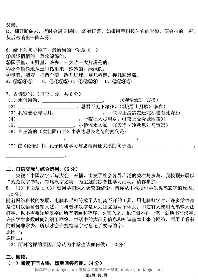 七年级上语文期中模拟测试卷 简单街 17天前发布 关注 私信 030 七年级上语文期中模拟测试卷此内容为付费资源,请付费后查看¥0.9黄金会员免费钻石会员免费立即购买您当前未登录!建议登陆后购买,可保存购买订单格式pdf页数8 页大小3.03 MB付费资源 ——预览已结束,还剩6页未读——开通会员后可免费下载高清完整文档 © 版权声明文章版权归作者所有,未经允许请勿转载。THE END初中语文喜欢就支持一下吧点赞0 分享收藏0