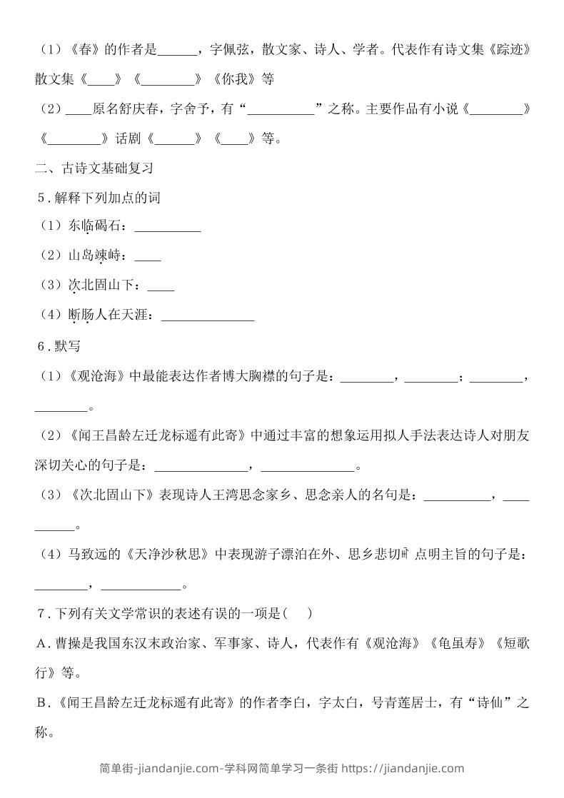 七年级上语文单元基础知识总结练习 简单街 18天前发布 关注 私信 020 七年级上语文单元基础知识总结练习此内容为付费资源,请付费后查看¥2.7黄金会员免费钻石会员免费立即购买您当前未登录!建议登陆后购买,可保存购买订单格式pdf页数34 页大小351.51 KB付费资源 ——预览已结束,还剩32页未读——开通会员后可免费下载高清完整文档 © 版权声明文章版权归作者所有,未经允许请勿转载。THE END初中语文喜欢就支持一下吧点赞0 分享收藏0