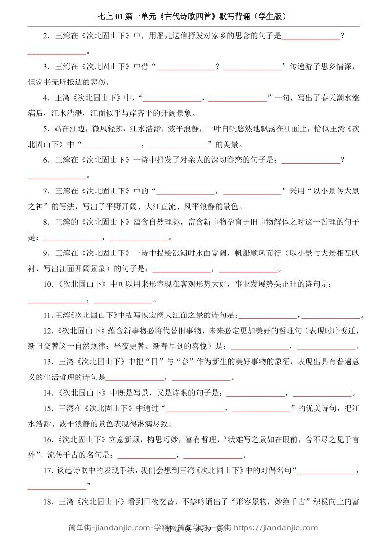 七年级上语文第1单元《古代诗歌四首》默写背诵 简单街 19天前发布 关注 私信 020 七年级上语文第1单元《古代诗歌四首》默写背诵此内容为付费资源,请付费后查看¥1.5黄金会员免费钻石会员免费立即购买您当前未登录!建议登陆后购买,可保存购买订单格式pdf页数9 页大小409.58 KB付费资源 ——预览已结束,还剩7页未读——开通会员后可免费下载高清完整文档 © 版权声明文章版权归作者所有,未经允许请勿转载。THE END初中语文喜欢就支持一下吧点赞0 分享收藏0
