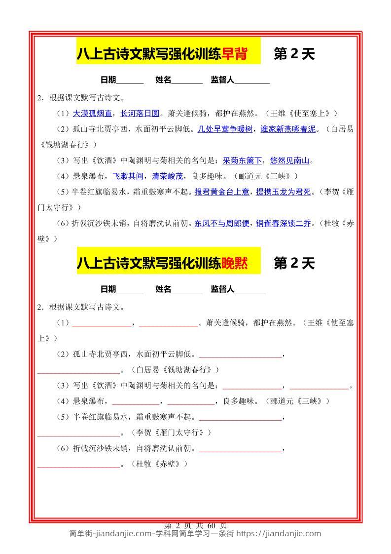 八年级上语文古诗文默写强化训练早背晚默59天 简单街 12天前发布 关注 私信 010 八年级上语文古诗文默写强化训练早背晚默59天此内容为付费资源,请付费后查看¥2.7黄金会员免费钻石会员免费立即购买您当前未登录!建议登陆后购买,可保存购买订单格式pdf页数60 页大小607.49 KB付费资源 ——预览已结束,还剩58页未读——开通会员后可免费下载高清完整文档 © 版权声明文章版权归作者所有,未经允许请勿转载。THE END初中语文喜欢就支持一下吧点赞0 分享收藏0