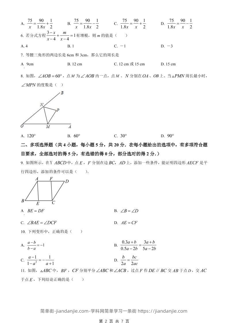 八年级上数学期末试卷(青岛版) 简单街 21天前发布 关注 私信 010 八年级上数学期末试卷(青岛版)此内容为付费资源,请付费后查看¥0.9黄金会员免费钻石会员免费立即购买您当前未登录!建议登陆后购买,可保存购买订单格式pdf页数28 页大小996.08 KB付费资源 ——预览已结束,还剩26页未读——开通会员后可免费下载高清完整文档 © 版权声明文章版权归作者所有,未经允许请勿转载。THE END初中数学喜欢就支持一下吧点赞0 分享收藏0