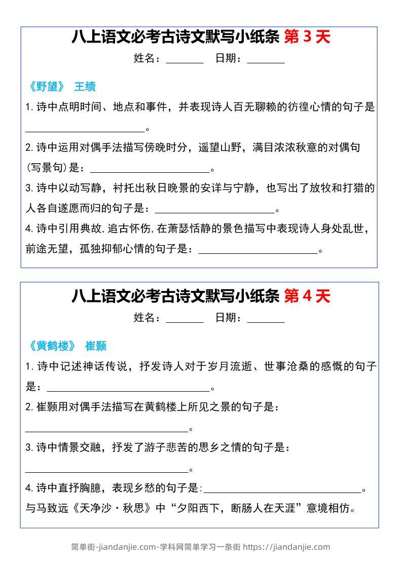 八年级上语文必考古诗文默写小纸条20天 简单街 2月前发布 关注 私信 000 八年级上语文必考古诗文默写小纸条20天此内容为付费资源,请付费后查看¥2.7黄金会员免费钻石会员免费立即购买您当前未登录!建议登陆后购买,可保存购买订单格式pdf页数20 页大小470.41 KB付费资源 ——预览已结束,还剩18页未读——开通会员后可免费下载高清完整文档 © 版权声明文章版权归作者所有,未经允许请勿转载。THE END初中语文喜欢就支持一下吧点赞0 分享收藏0