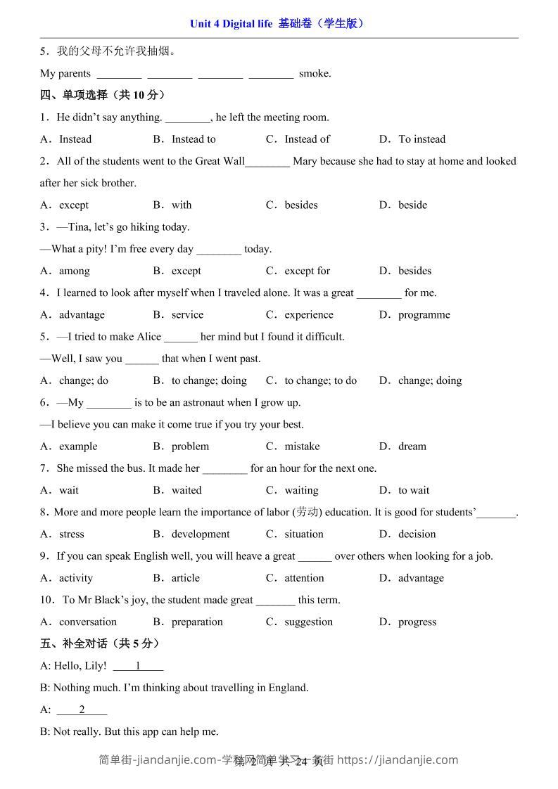 八年级上英语Unit4基础卷(外研版) 简单街 8天前发布 关注 私信 000 八年级上英语Unit4基础卷(外研版)此内容为付费资源,请付费后查看¥2.7黄金会员免费钻石会员免费立即购买您当前未登录!建议登陆后购买,可保存购买订单格式pdf页数24 页大小961.66 KB付费资源 ——预览已结束,还剩22页未读——开通会员后可免费下载高清完整文档 © 版权声明文章版权归作者所有,未经允许请勿转载。THE END初中英语喜欢就支持一下吧点赞0 分享收藏0